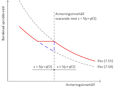 Metoden i Betongföreningens handbok ger i vissa fall för liten beräknad sprickbredd. En armering som uppfyller minimivillkoret enligt ekv (7.1) med armeringsspänning fyk har visat sig kunna ge sprickbredder av förhindrad krympning som är större än vad de högre exponeringsklasserna tillåter, men som kan vara acceptabla om det inte finns krav med avseende på beständighet, funktion eller estetik, och om den enda inverkan är förhindrad krympning.